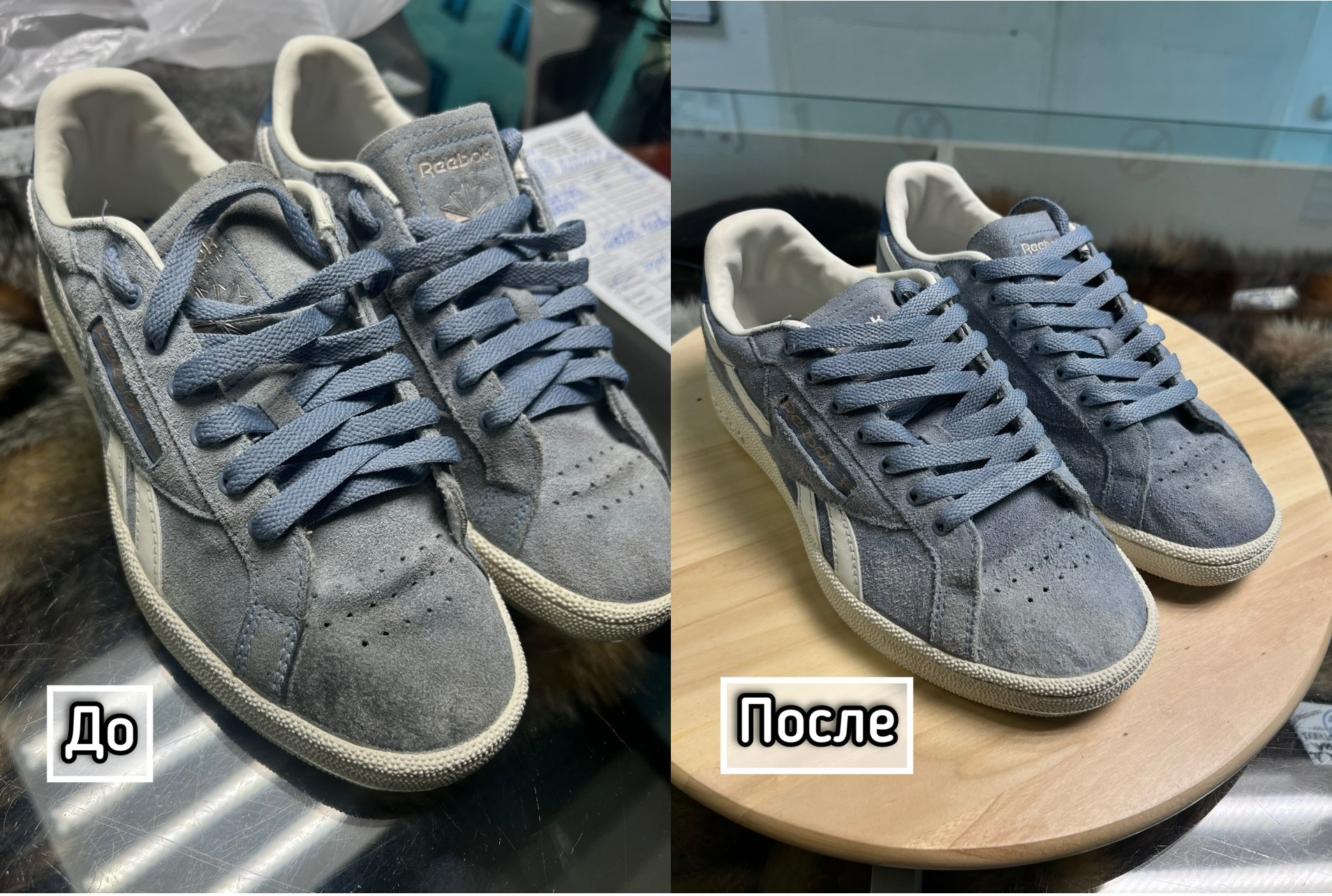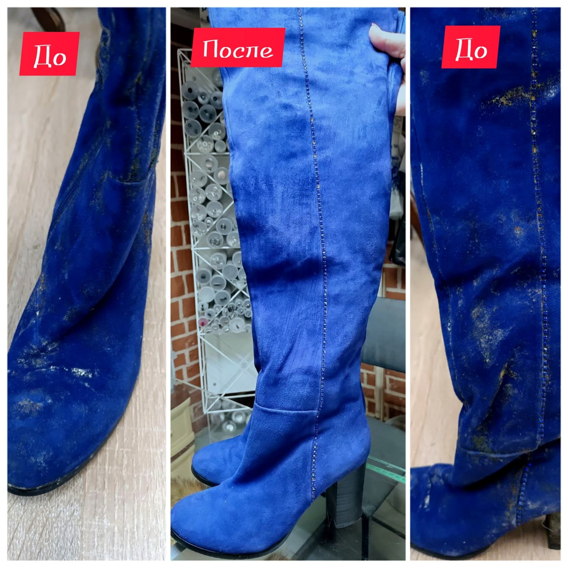 3. Восстановление цвета: обработка обуви специальными красителями, которые возвращают замше и коже первоначальный вид и яркость.